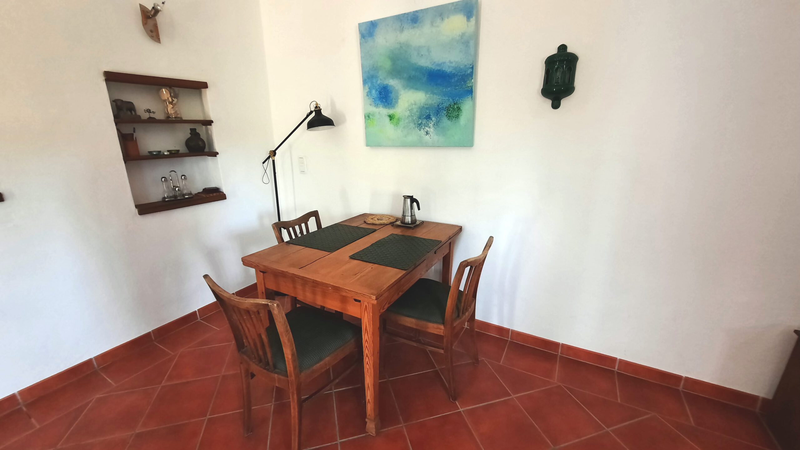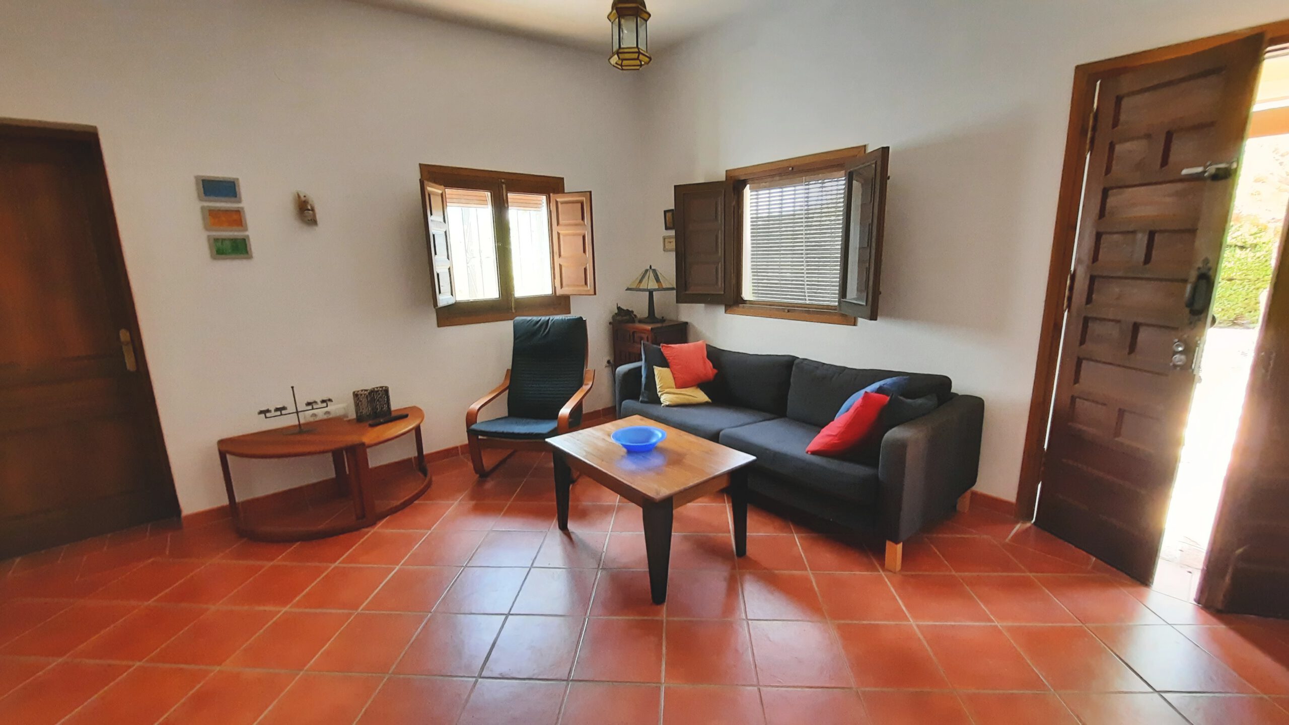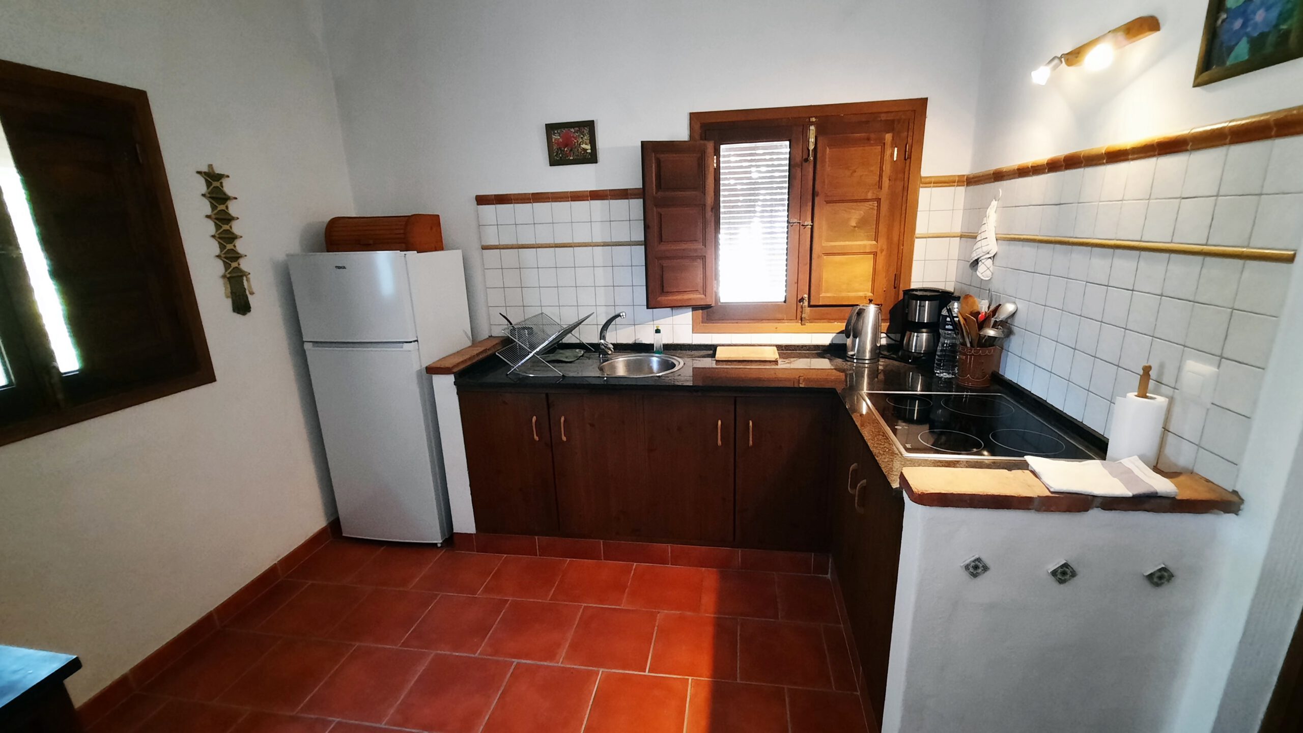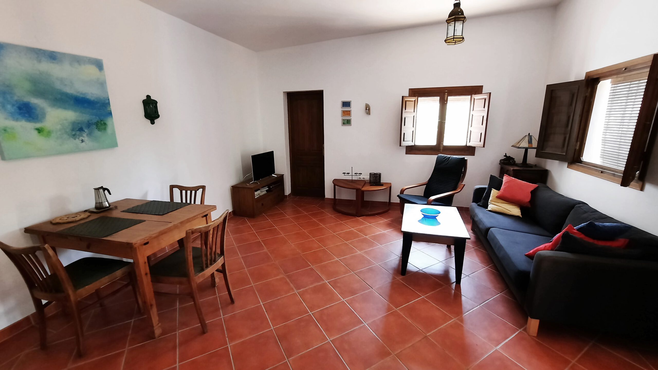Casa „El Chiquitin“ befindet sich zusammen mit dem Haupthaus der deutschen Eigentümer auf einem Grundstück von 1.500 m², im ländlichen Umland von Conil. Die Entfernung zum Strand und zur Ortsmitte beträgt ca. 2,5 km. Das Haus ist im typisch andalusisch-rustikalen Stil gebaut. Es verfügt über ein Duschbad, ein Schlafzimmer mit einem Doppelbett (140×200) ein geräumiges Wohnzimmer mit ausziehbarem Esstisch und einer Sitzecke mit Sofa und Sessel. Die offene Küche ist komplett ausgestattet (Gefrierkombi, Ceranfeld, Minigrill, Kaffeemaschine, Mixer , reichlich Geschirr, etc.).